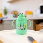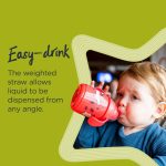 The soft, silicone straw is easy to drink through and little ones don’t have to tip the cup up very far to drink from it. The weighted straw allows your baby to drink from any angle and the easy-grip handles are perfect for tiny hands.