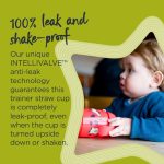 • 100% leak and shake-proof: Our unique INTELLIVALVE™ anti-leak technology guarantees this trainer straw cup is completely leak-proof, even when the cup is turned upside down or shaken.